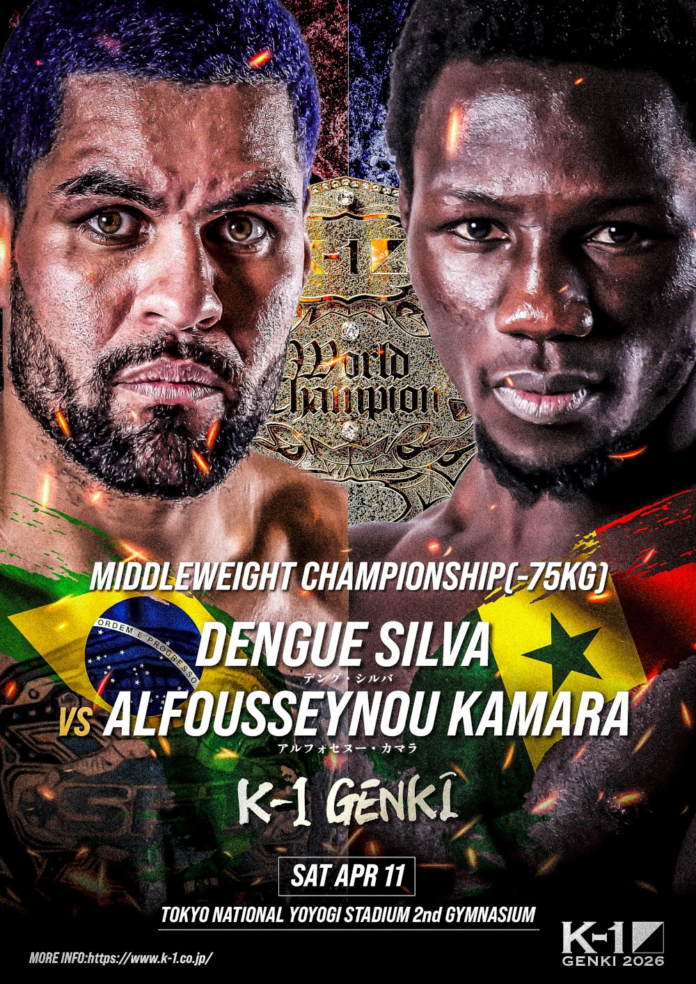 “灼熱のビッグモスキート”デング・シルバは、24年のK-1 WORLD MAX世界トーナメント準決勝でストーヤン・コプリヴレンスキーと戦い、3位に。25年7月にはブハリ亜輝留を破り、第2代Krushミドル級王者となった。前戦は今年2月にカスペル・ムシンスキからダウンを奪われながらも逆転KO勝ちを収めたばかりだ。