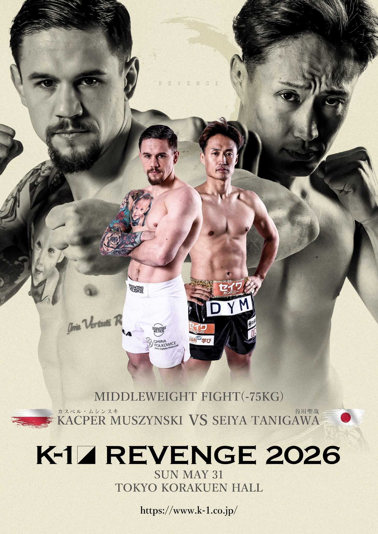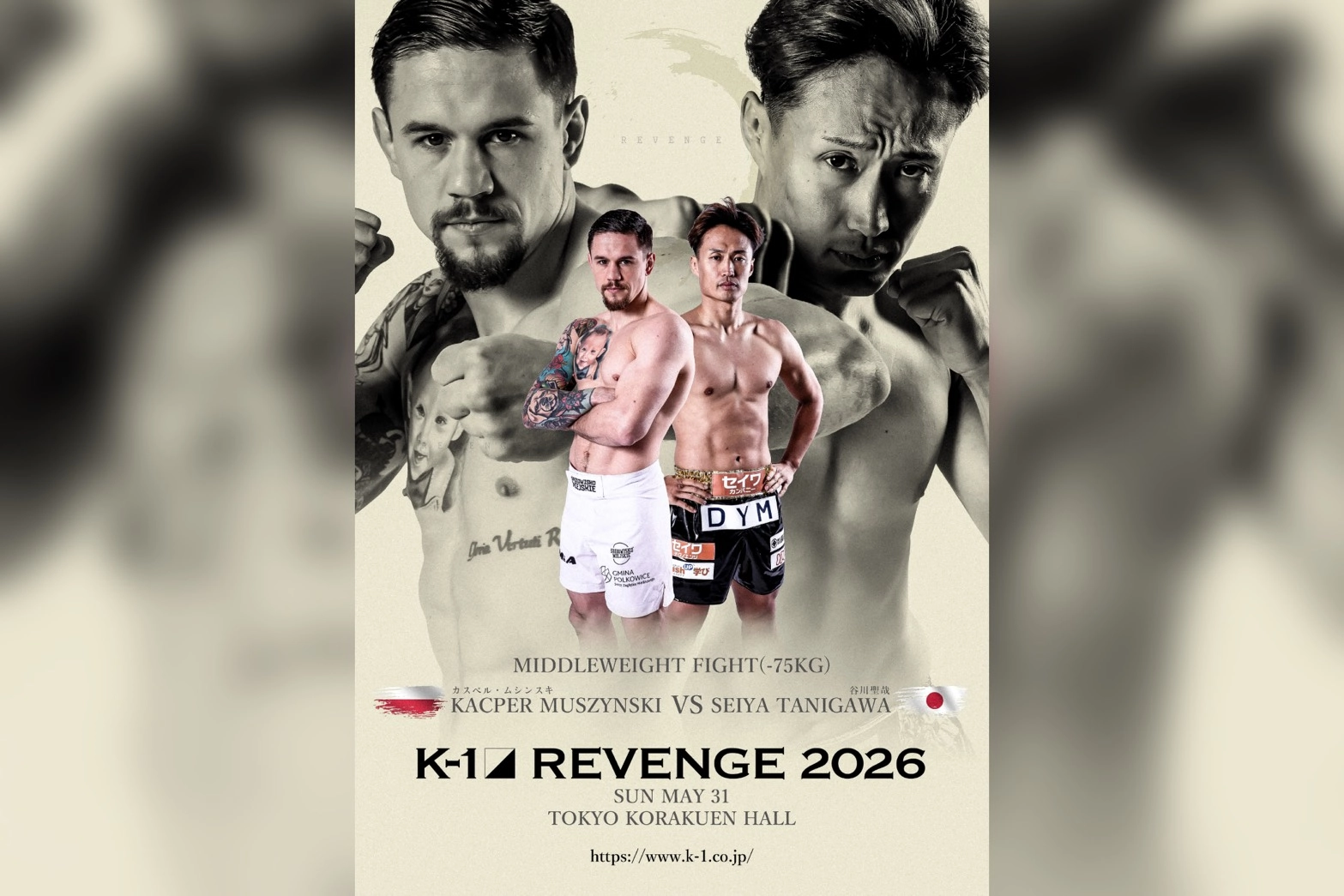ムシンスキは、25年のK-1 WORLD MAX世界トーナメント一回戦(70kg)でオウヤン・フェンに僅差の判定負けを喫し、26年2月は階級をミドル級(75kg)へ上げてデング・シルバと対戦したもののボディブローでダウンを奪いながらも、逆転のKO負け。まさかの2連敗で、こちらも崖っぷちに追い込まれている。