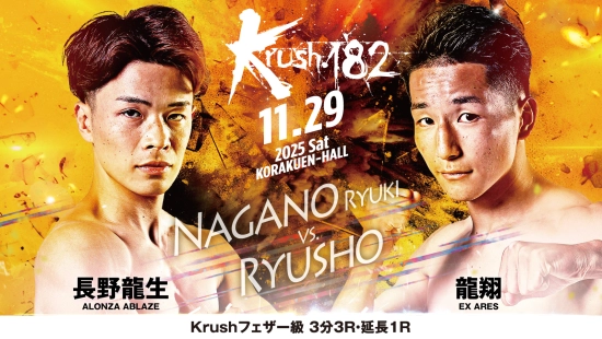 「Krush.182」11.29(土)後楽園 長野龍生vs龍翔 コメント公開! 「フェザー級を荒らすのは俺だ!!」(長野)vs「やるかやられるかでしっかり倒しに行きたい」(龍翔)