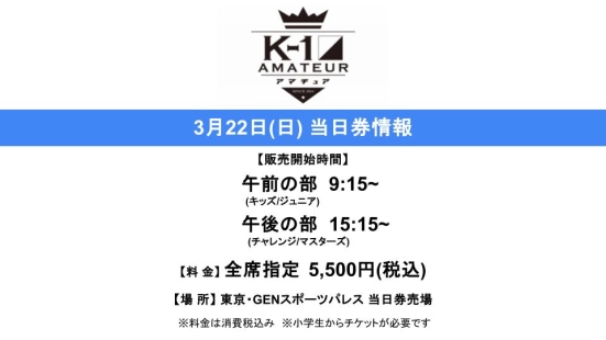 「第20回K-1アマチュア全日本大会~アマチュア日本一決定オープントーナメント~3.22(日)東京・GSP 当日券情報