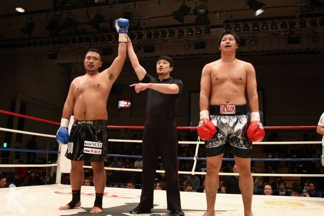 3R、斐也が左フックから前進。しかし訓が斐也の左ミドルに左フックを合わせてダウンを奪う。再開後、斐也は右ストレートとハイキックを蹴るが、訓もジャブ・右ストレートを当てる。訓が4ポイント差をつけて判定勝利した。