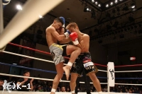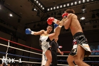 2R開始のゴングと同時に飛びかかっていく小澤。伊藤が右ミドル、小澤が左ローを蹴る。お互いに激しく蹴り合う展開の中、小澤は左ミドルと左ロー。伊藤が右のヒザ蹴りで前に出ると、小澤は右フックを返して前に出る。小澤が左ローを連打すれば、伊藤は右ハイキックを蹴って譲らない。