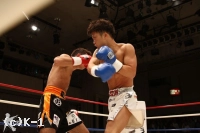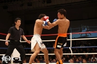 1R、いきなりパンチをまとめて前に出ていく大滝。神戸もカウンターの右ストレートを当てるが、大滝は右ストレートで飛び込んでいく。距離を取りながら右アッパー・左フックで前に出ていく大滝。神戸も左フックを返し、パンチの手数を増やす。
