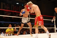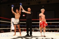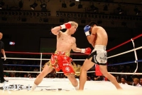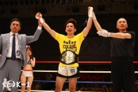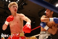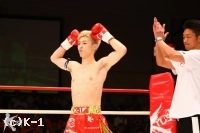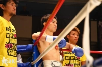 延長来るなとも思ったんですけど、ジャッジが決めた判定なので疑問はないです。(自分のラッシュについては?)手ごたえあったので。あとは向こうがアセって仕掛けてくると思ったので、そこに右ストレート合わせようとしたんですけど、それができなかったのは実力不足です。(試合の鍵になったのは?)やっぱり、気持ちだと思います。とにかく、勝とうと思ったんですけど。また、地に足つけて最初からがんばっていこうと思います。(今後の目標は?)イチから全部、技術も精神面も鍛え直して。こういう言い方はかっこわるいですけど、僕はまだ可能性を秘めていると思うので。ここからスタートだと思って、新たにがんばろうと思います。(試合後の龍児さんの言葉は?)地に足つけて頑張ろうと言われたので。最後、メインをもうちょっと盛り上げられればと思ったんですけど、そこも反省点で。勝てないのが一番の反省点なので、次は絶対にチャンピオンになれるようにがんばっていきたいと思います」