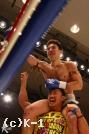 佐々木 第4代-63㎏級王者の佐々木大蔵です。セコンドについてくれた秀さんの次にこのベルトを巻けて嬉しいです。重みを感じます。僕は格闘技はいじめに出会って始めて、チャンピオンとかは思わず、強くなりたい一心でしたが、前田先生に「強くなろう」って言われて、先輩がプロになればプロになりたい、チャンピオンになればチャンピオンになりたい、そうやって追いかけて、夢を抱いてここまで来ました。本当に続けてこられてよかったですチームドラゴンじゃなかったらこのベルトは巻くことができませんでした。この機会を逃したらやめようと思って臨みましたが、また夢ができました。龍児さん、トーマス選手、秀さんが輝かしたベルトをさらに輝かしたい。泣き虫ですけど、これからは堂々とチャンピオンとして取り組んでいくので、今後とも佐々木大蔵とチームドラゴンをよろしくお願いします」