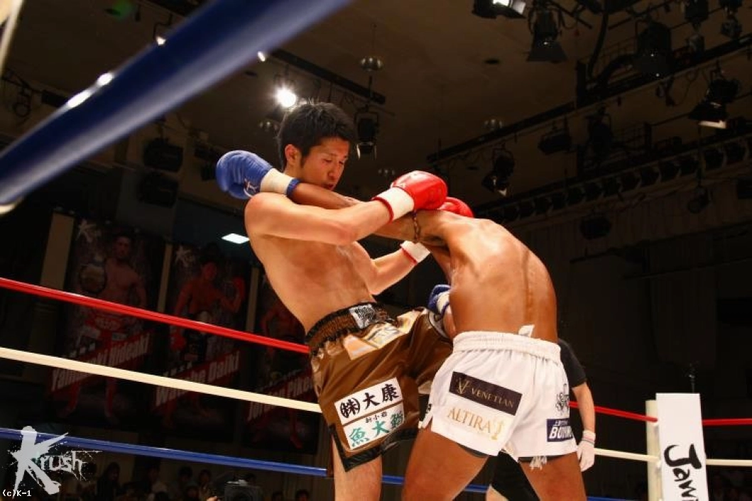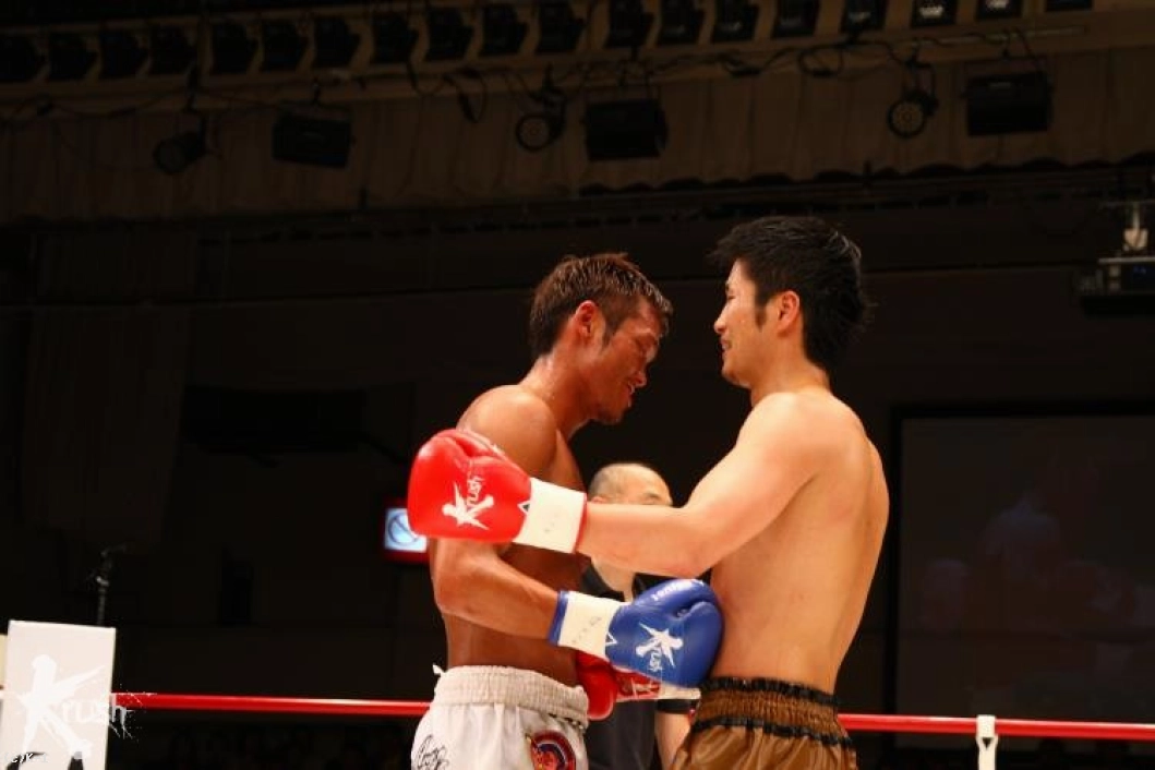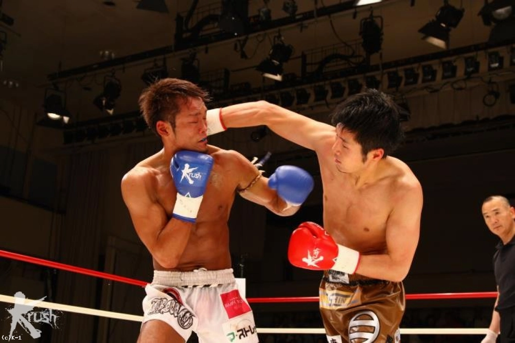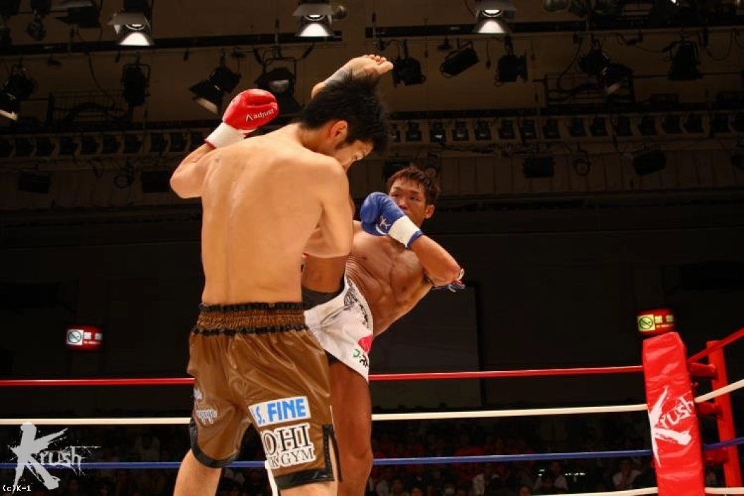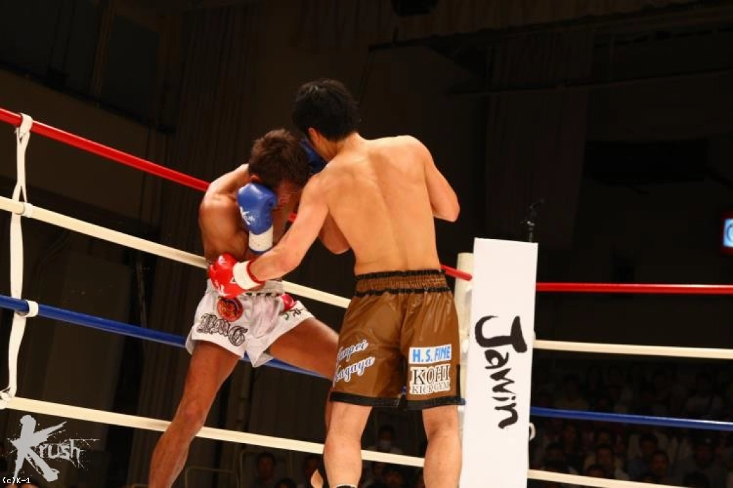 3R、右ストレートと左ボディフックを青津が打ち込むが、高橋は両手を広げ「大丈夫だ」というアピールを見せる。高橋は右ロー、左インローをヒットさせ、これに青津がややグラつくと前進を強め、右ローを追加する。ラウンド終盤は高橋が青津を押していく展開となり、ローとヒザを浴びせる。