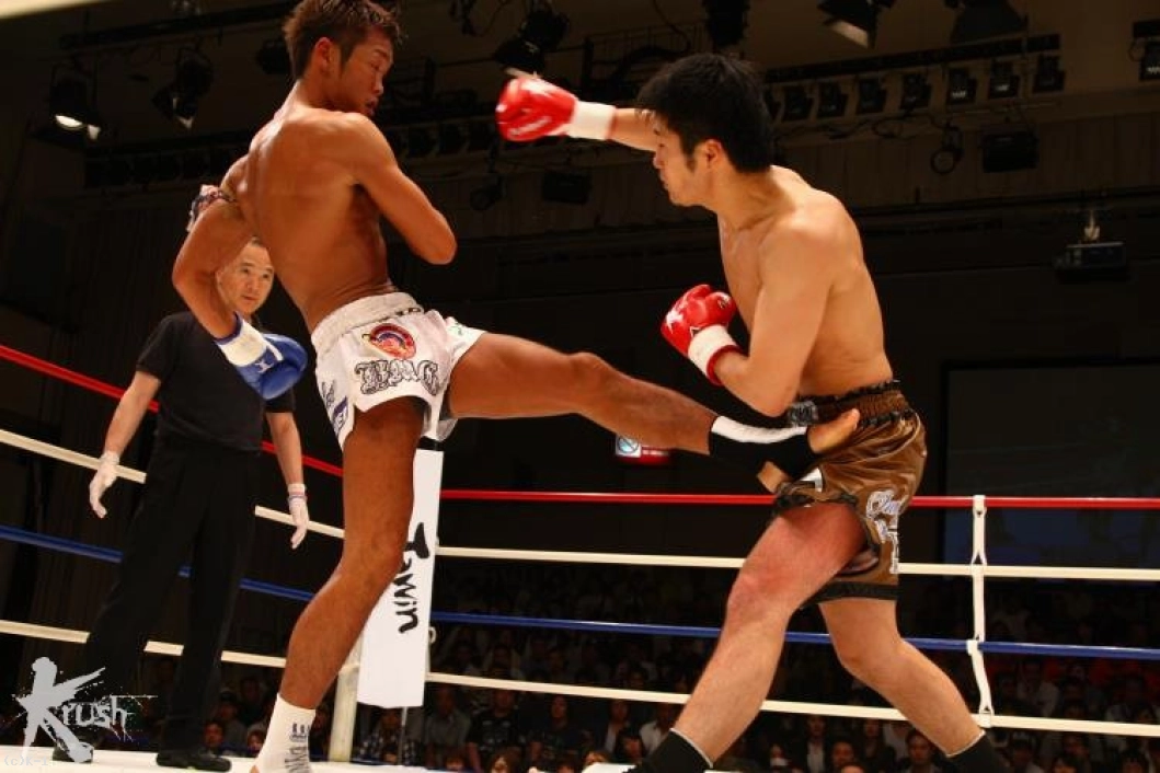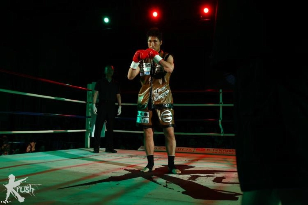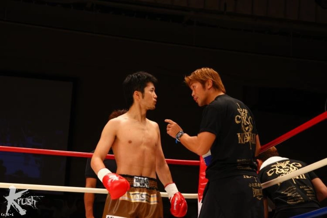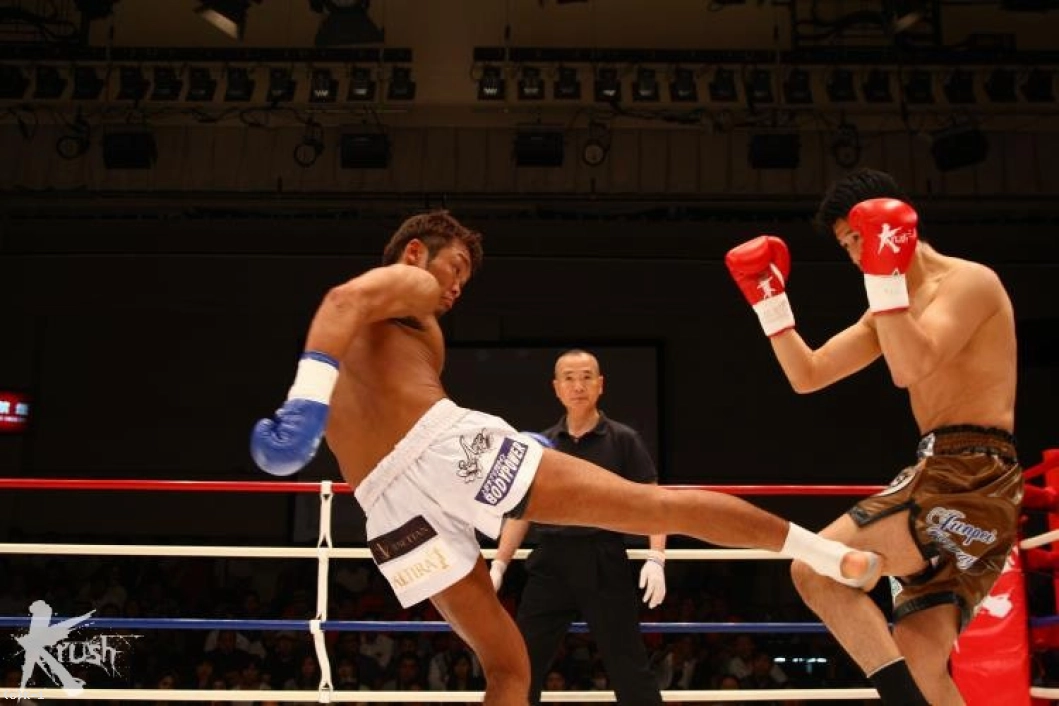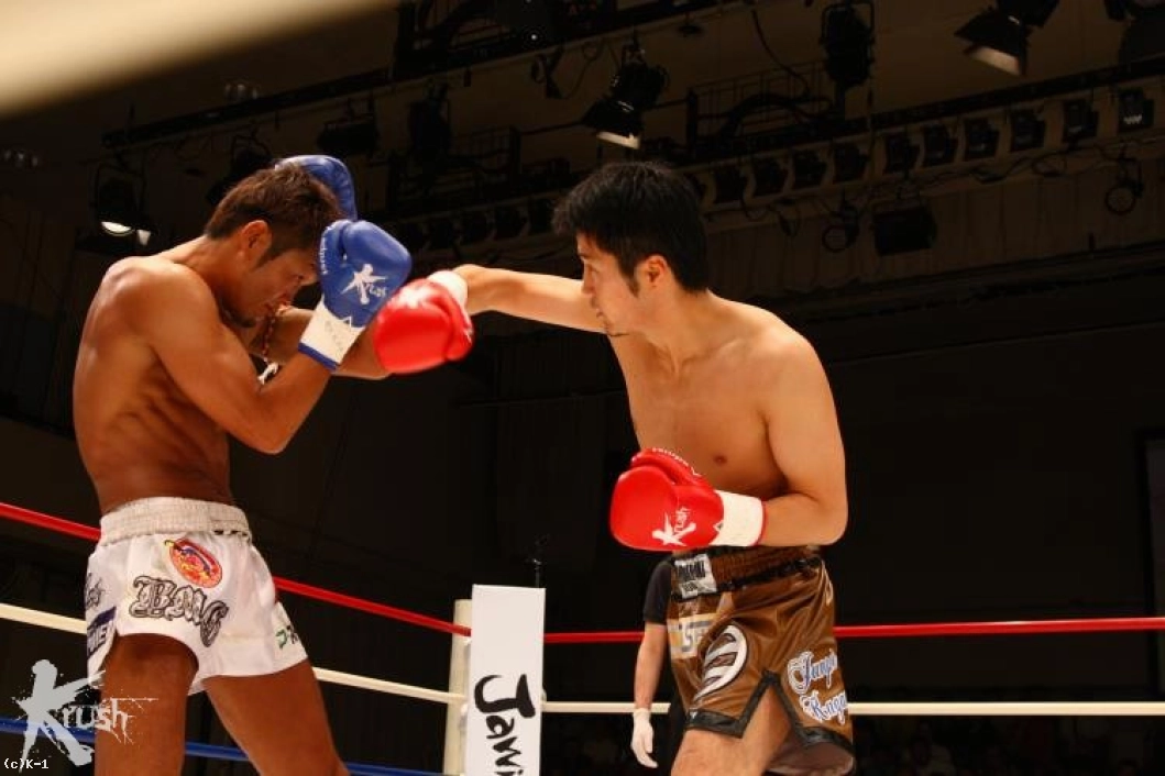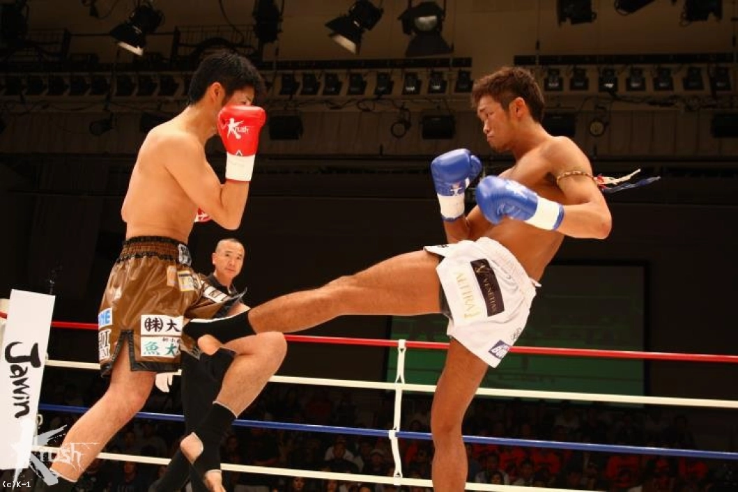 3R、右ストレートと左ボディフックを青津が打ち込むが、高橋は両手を広げ「大丈夫だ」というアピールを見せる。高橋は右ロー、左インローをヒットさせ、これに青津がややグラつくと前進を強め、右ローを追加する。ラウンド終盤は高橋が青津を押していく展開となり、ローとヒザを浴びせる。