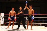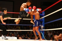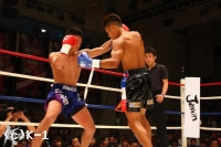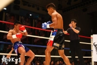 2R、江川は左右ボディフックから顔へ返す左フック、跳びヒザ、右フックとこのラウンド勢いを増し、結城をロープ・コーナーに詰めて攻め立てる。ボディストレートから左フックと振るって形成逆転を図る結城だが、江川はディフェンスもしっかりしておりクリーンヒットを許さない。左右アッパー、フックと結城に付け入らせない。