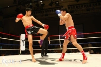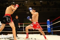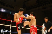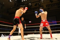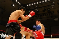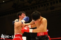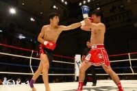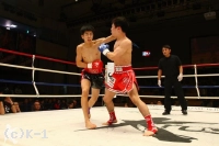 3R、優勢の小只は自信を持って前に出る。桜井も下がらず応戦し、右フックを返すが、ここで桜井の頭がバッティングとなり、小只は右こめかみ周辺から出血。しかし小只はひるまず、右フックと左ストレートの連打を見舞って依然攻勢。