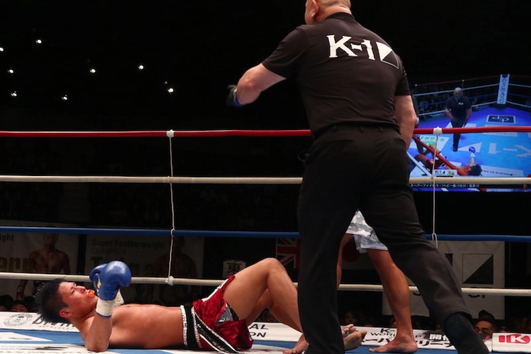 3R、足が効いているK-JeeはKOICHIに攻めて出ていくが、跳びヒザを放った際にKOICHIが右フックを合わせてダウンを奪取。KOICHIは一気に仕留めに掛かり、最後は跳びヒザを決めK-Jeeを再び倒してノックアウトした。