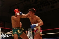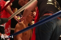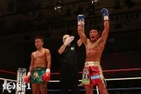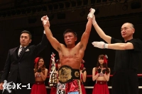 「(試合を振り返って?)タフな試合でしたね。身体が疲れたよりは神経的な、頭脳戦の疲れで。もし、延長戦にいっても体力は残っていたので。アッチがボディからのハイを狙っていたのはわかってました。(トーナメントを振り返って?)楽しかったですね、勝ったんで(笑)。(最後の左右田選手の乱入は?)チャンピオンになって1分くらいできたので(笑)。みんな、気づかなかったんじゃないですか? マイクもでかい声でしゃべってなかったので、スベッた間はありましたよね。(ようやくベルトを手にして?)3日くらい、余韻に浸ります。でも、追っかけてるほうが好きなので、次の目標をまたがんばろうと思います。達成して満足は好きじゃないんですよね。このままベルトを防衛して、K-1とかでも戦いたいですね。嬉し泣きしましたよ(笑)。判定も2-1だったので。ここで獲れなかったら、持ってない人間なので。どんなかたちといえども獲れたのは持ってる人間だと思いますし。また、このベルトが強くしてくれると思います。(左右田選手は「まずは」言っていたが?)何言ってるかわからなかったので(笑)。でもまあ、K-1でずっと活躍して強い選手なので。でも、正直そんなに差はないですよ。ちょっとした差がでかいんですけど、その差はすぐに埋まりますよ。僕はベルト獲ってまだ5分くらいなので、まだなんとも思わないですけどね。これからもっと、ベルトに愛着が生まれるかもしれないですね」