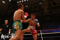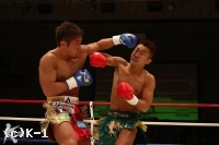 2R、小宮はボディストレート、左ミドルからこのラウンドをスタート。中澤は右ローを打ち込み、前に出て右ストレート、左フックと力のこもったパンチを振るう。足払いを見せた中澤に、小宮は再びボディストレート。中澤は左フックを強振するが、小宮も見切って当てさせない。右ローを効かせる中澤だが、小宮も右ローを効かせ返す。小宮の右ボディストレートの打ち終わりに中澤は左フックを狙う。小宮は右ローを連発で当て、このラウンドを終える。