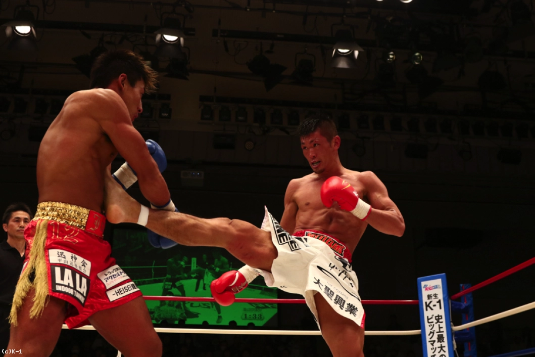 3R、ダウンのビハインドがある牧平は勢いを増してローで襲いダウンを奪うが、平山はローブローをアピール。カウントが進みゴングが鳴るが、審判団により協議が行われる。ビデオ判定の結果ダウンを奪った攻撃はローブローと判断され、ダウンは取り消し。試合が続行される。牧平はローブローの影響で平山のボディのダメージも見越しているか、左ローに加えボディへの前蹴り・ヒザも飛ばす。ロー狙いで距離の近くなる牧平に平山はアッパーを合わせるが、牧平は止まらない。前蹴り・三日月蹴り・左ロー・ハイキックと最後まで蹴りで攻めて終える。判定は28-28、28-28、28-28でドロー。延長戦で勝負を決することとなる。