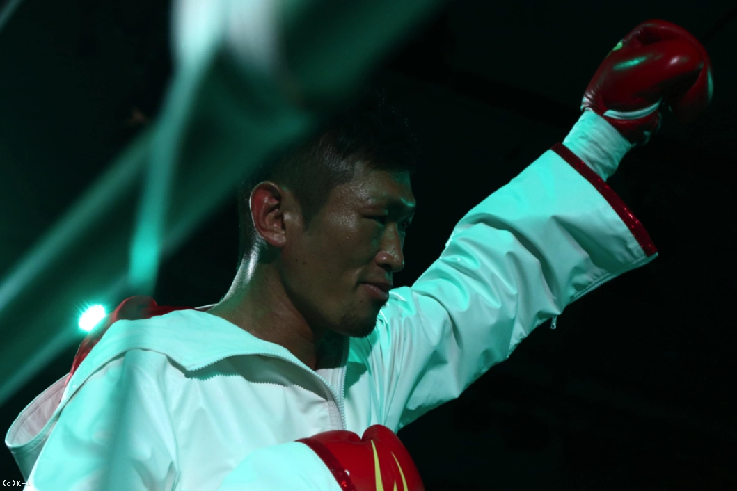 「(試合を振り返って?)まあ、蹴りも徹底してちょっと効かせたけど、ツメが甘かったなっていう試合でした。(対戦相手の印象は?)自分がもらっちゃって、徹底出来なかった甘さが出た試合でしたけど、1月、自分の大先輩の山内さんがタイトルマッチなんで、何がなんでも気持ち切らさんと、技術なく気持ちで勝ち取った勝利だなと思います。(チャンピオンへの気持ちは?)本当に強いチャンピオンなんで、本当に覚悟して、後悔ない毎日を明日から歩んで、1ミリでも勝つ可能性があるように磨いていきます」