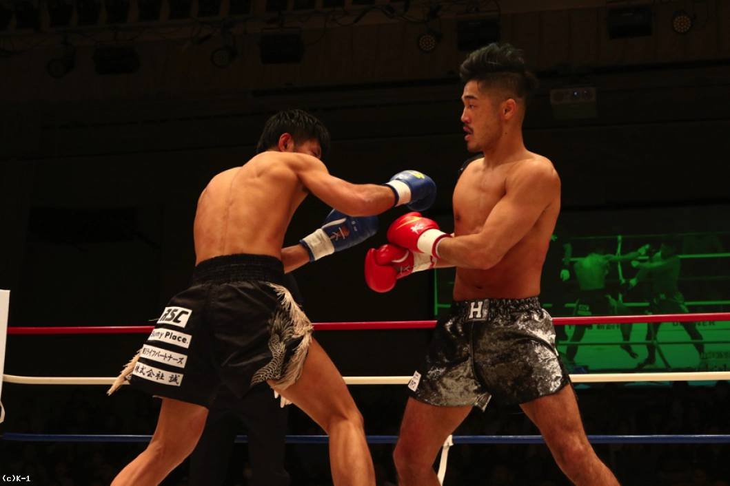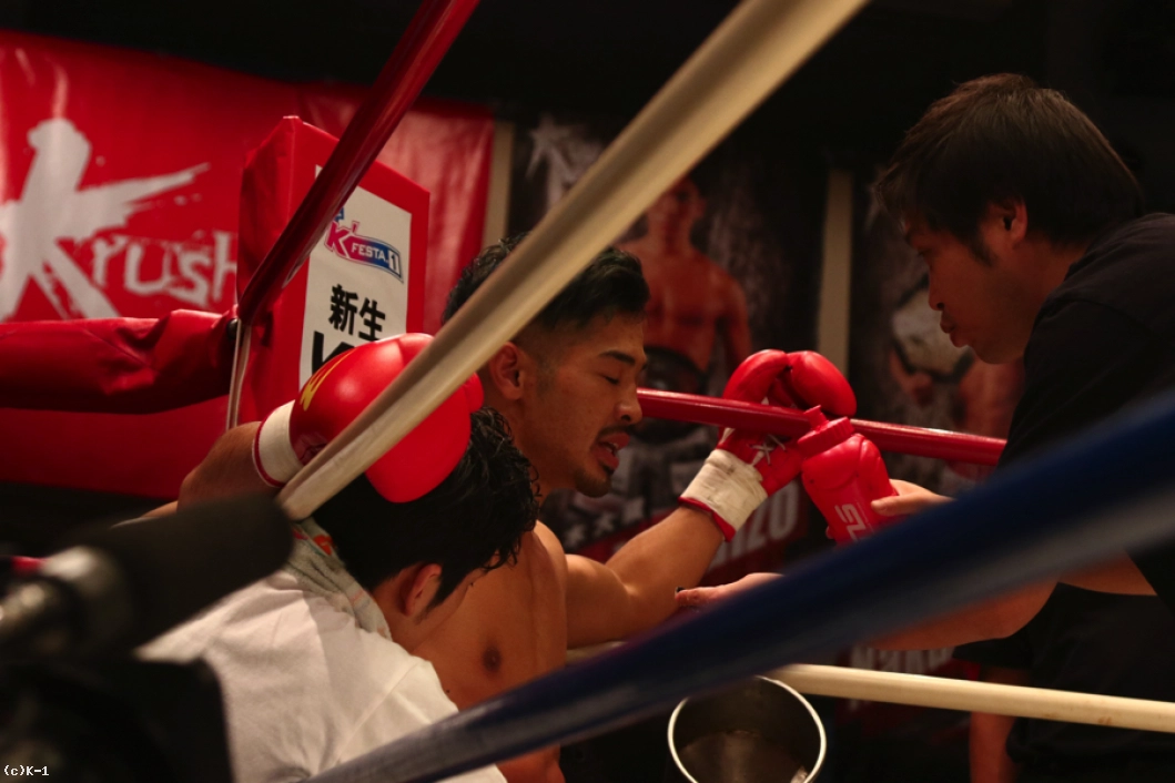 「(試合を振り返って?)左ストレートが凄く伸びるので距離がちょっと遠くなったなって。(対戦相手の印象は?)なんか試合前に映像で見たことがあるんですけど、心がまっすぐな選手っていうか、素直な感じに見えました。攻撃にも嘘がないっていうか、そんな選手でした。(今後の目標は?)自分は一戦一戦必死にやっているんで、この試合に懸けてやってたんで、今は次のことはわからないですけど、K-1が目標で格闘技始めたんで、そこはブレたくないなっていうのがあります」