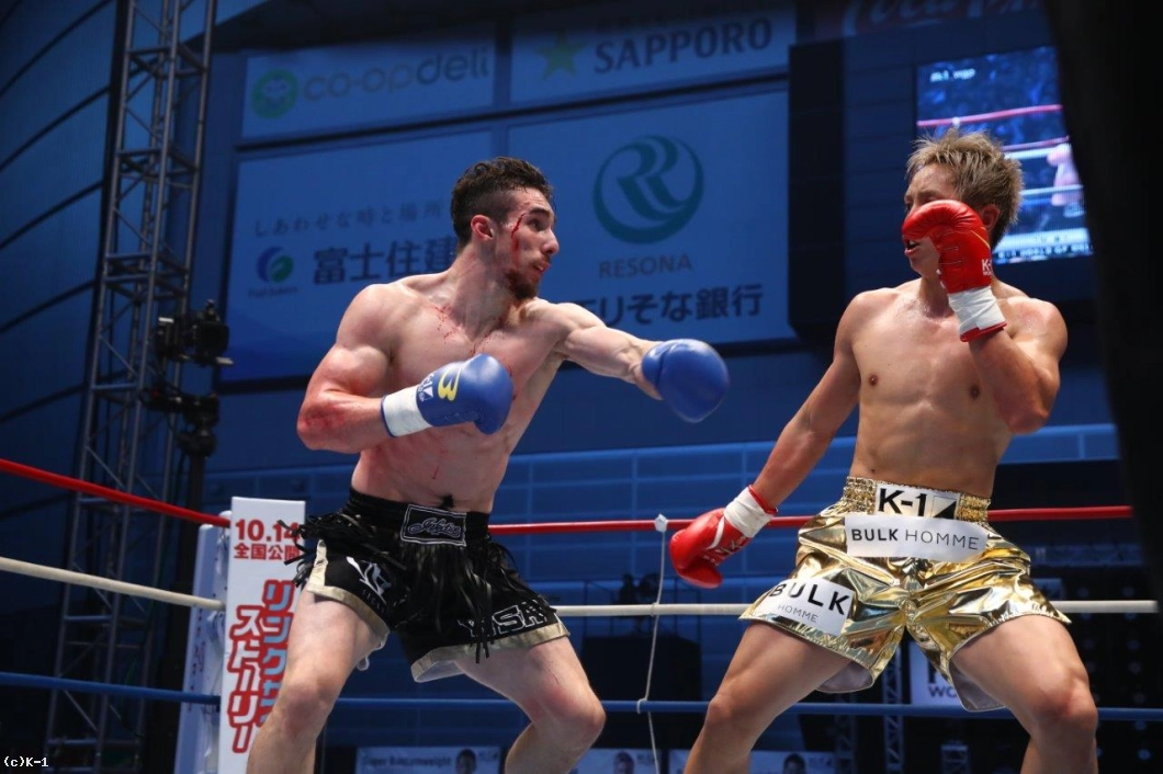 3R、久保の左ミドルがやはり気になる様子の木村。それでもステップを踏み前に出るが、これは久保が早い察知のバックステップで距離をあける。木村は挽回にフックを強振して向かうが、久保はこれをかわしながらフックを当てて、2度目のダウンを与える。立ち上がった木村に久保は左ハイを当て、これで木村は右目横が切れて出血。ドクターチェックが実施される。再開すると残り時間がない中、木村は左フック・右ストレートに力を込めて向かうが、久保はクリンチを駆使してこれを押さえ試合を終える。