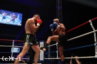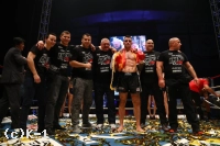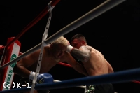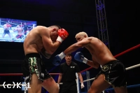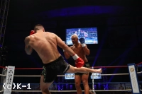 2R、息を吹き返したエル・ボウニは右ストレートを振るっていき、そこから連打をまとめると、今度は逆にプラチバットがマウスピースを吐き出してしまい一時中断。だが再開すると左フックを打ち込み、これが効いたかエル・ボウニは後退してく。さらに左ミドルを入れて追うプラチバット。エル・ボウニはしかし顔へのヒザを放って反撃する。