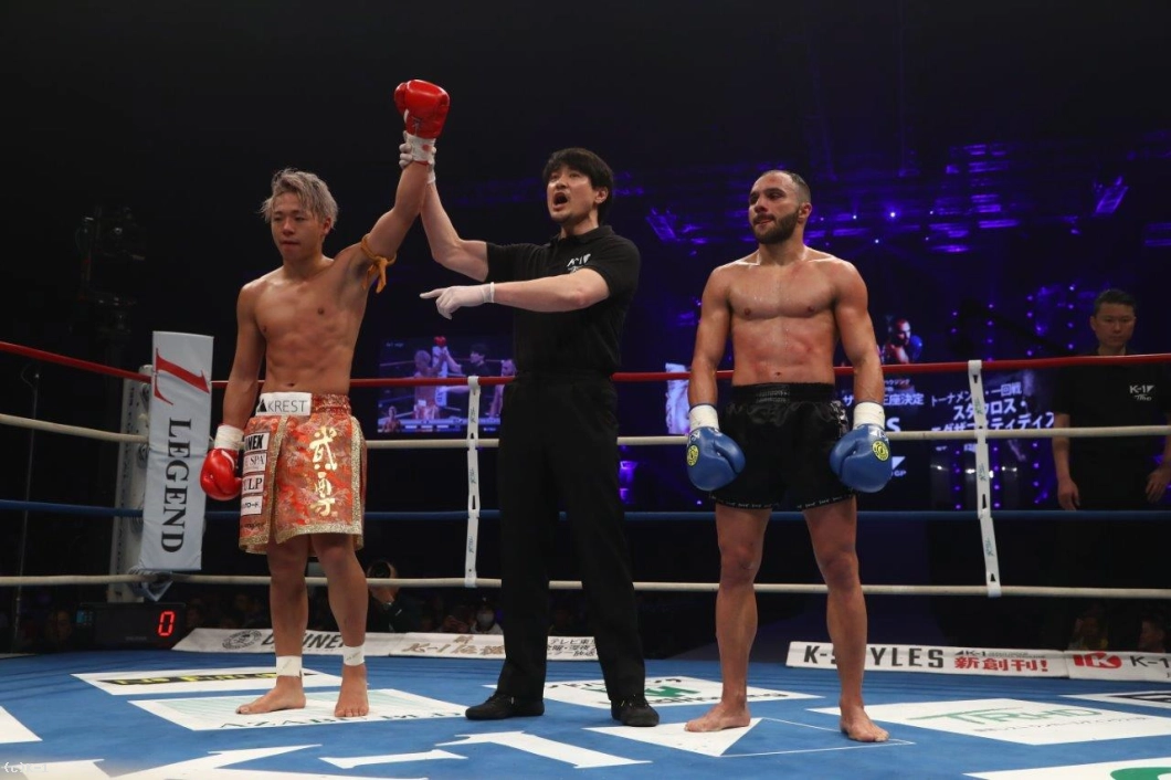判定は30-28、30-28、29-28の3-0で武尊。階級転向の初戦をクリアして準決勝に進んだ。