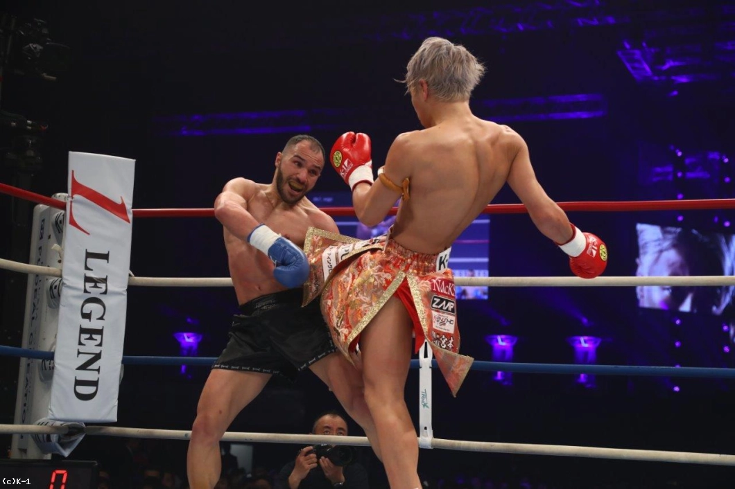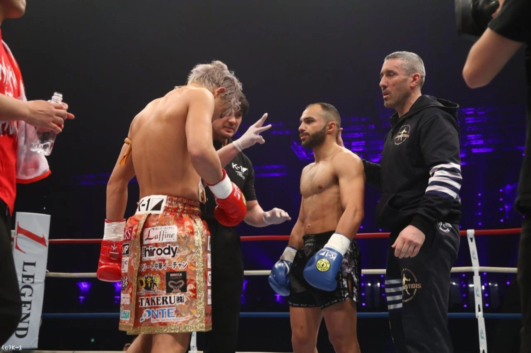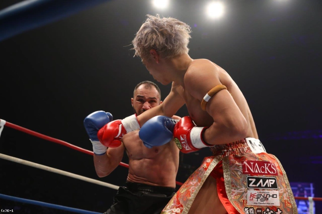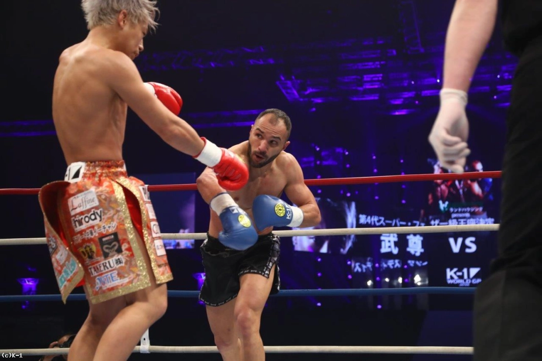 「(試合を振り返って?)武尊選手は非常に好敵手だ。1、2Rまではイーブンに持っていけたと思うけど、最終的に3Rが残念な結果になってしまった。2Rまでは良い線までいっていたのではないかと思う。(対戦相手の印象は?)自分と似たようなスタイルの試合をする選手だと思う。パンチはぼちぼち上手くいっていたと思うが、彼も上手く避けていたと思う。(今後の目標は?)現在、次の試合は決まっていない。この試合に出る価値があると思っていたので、アテネであった試合もキャンセルして臨んだ。それだけK-1は自分にとって価値のある大会だと思っている。このまま-60kgに留まって近い将来試合をしたい」