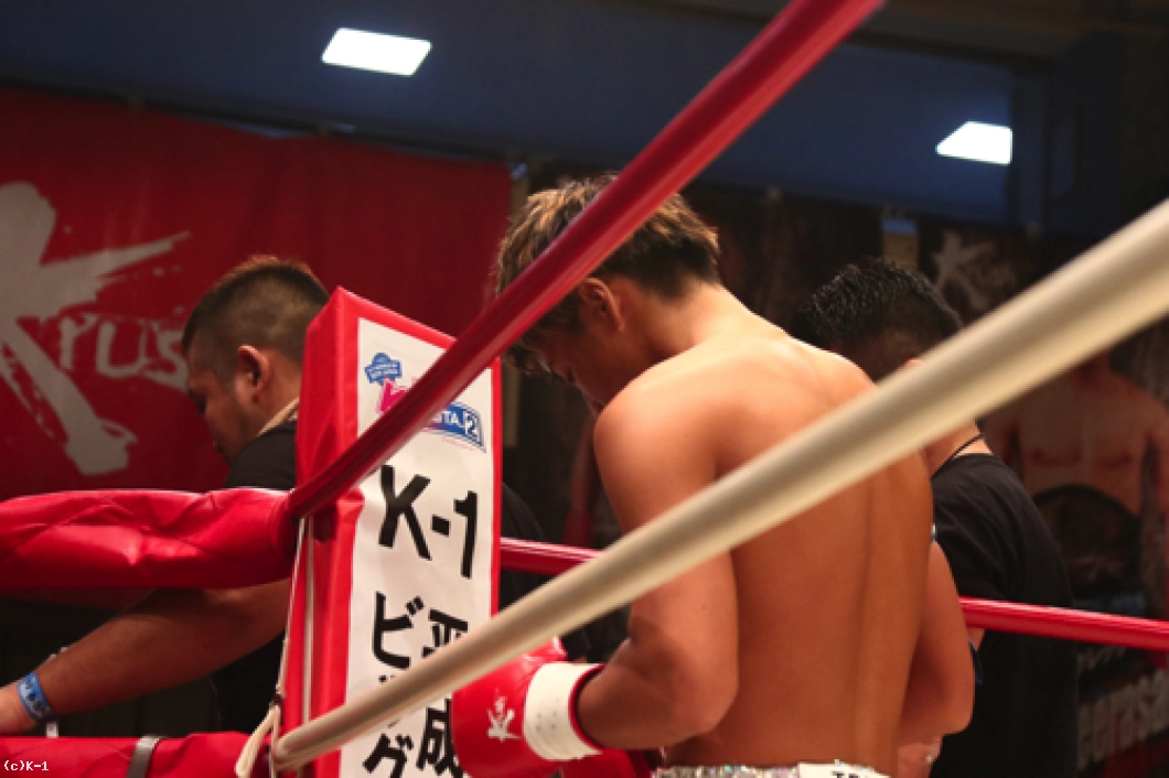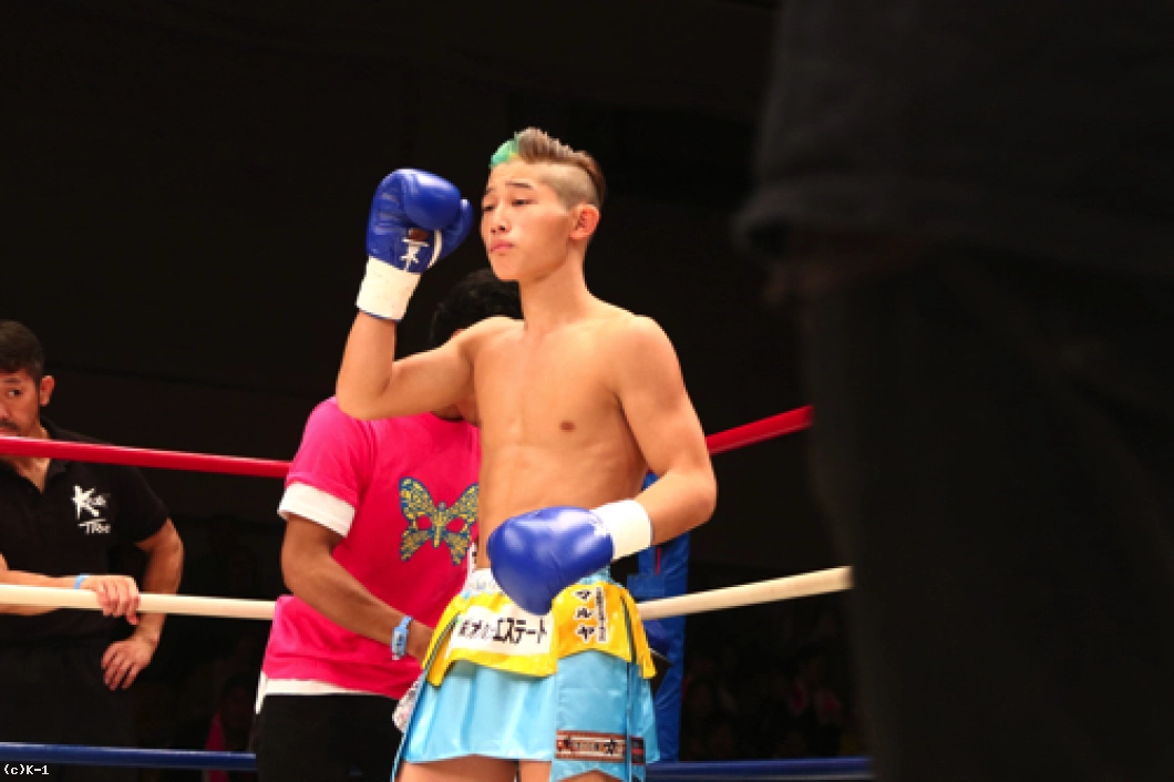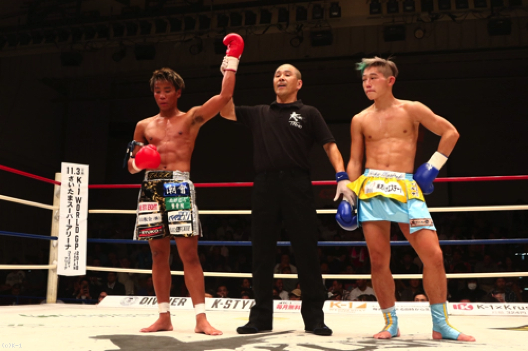 「(試合を振り返って?)ずっとKrushではバンタム級(‐53㎏)でやっていて、今回スーパー・バンタム級(-55kg)に上げて初めての挑戦だったんですけど、減量はあんまり変わらないので…。それでああいう試合になっちゃったんですけど、自分の中ではいい形でできたかなって。セコンドの声も全部聞こえて、作戦どおりにやれたので良かったと思います。(対戦相手の印象は?)凄くミドルを蹴ってくる選手だと思っていて、やりづらいのかなと思ったんですけど、案外ジャブが入りましたね。(今後の目標は?)いまスーパー・バンタム級の王座決定トーナメントに出ていて、あと2回勝てばチャンピオンになれるので。ここで優勝したいと思います」