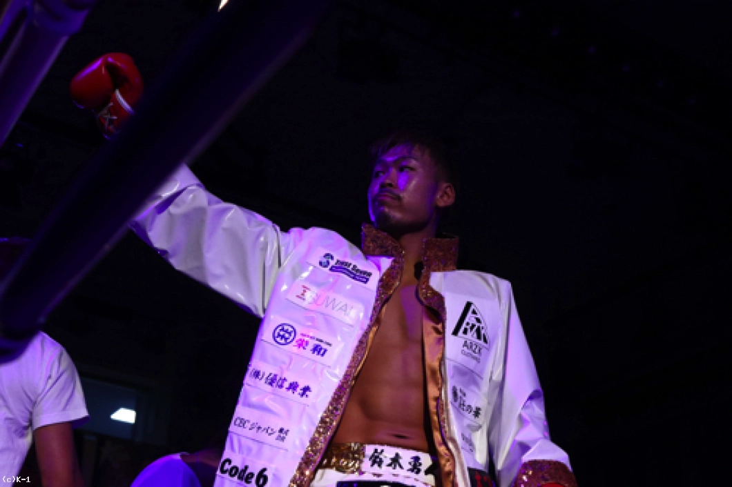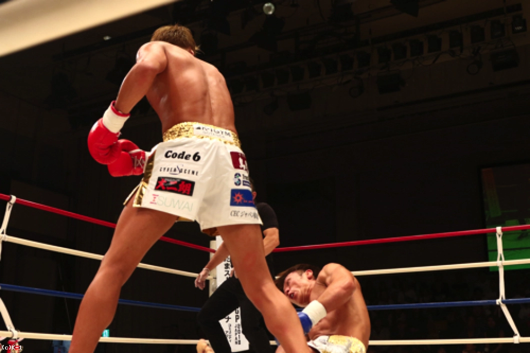 3R、開始早々に鈴木が左フックでダウンを奪う。打ち合いからさらに左フックでダウンを重ね、蓮實が挽回を期してパンチを振ってくると、狙い澄ました左ハイをヒット。鈴木が衝撃のKO勝利を見せた。