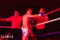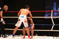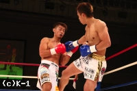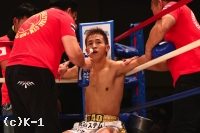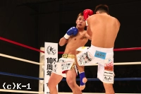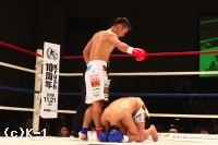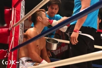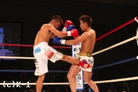 「(試合を振り返って?)1~2Rが終わって、対戦相手の方にローが全然入らなくて、ヤバいなとアセりながら3Rを迎えて、倒せたのが自分でビックリしました。(対戦相手の印象は?)いろんな選手と戦っているみたいで、ベルトも3本巻いているということで、やっぱり簡単な相手では全然なくて難しかったです。