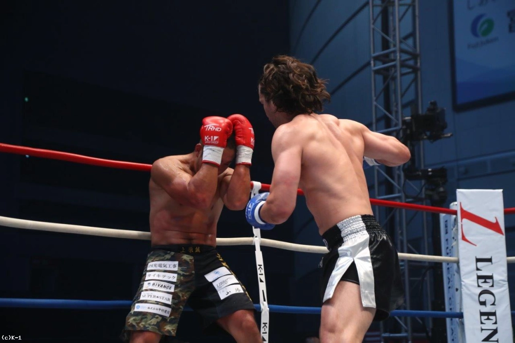 延長R、上原にロープを背負わせ左ストレートと右フックを回転させ、加藤はダウンを迫る。上原はこれをガードでしのぎつつ右ハイキック。だが、2発放つも加藤をとらえられない。加藤の左ローを効かされた上原だが、体を前傾にして前へ出て加藤にプレッシャーを掛ける。加藤はこれをローとストレートで迎撃。上原も体重を乗せた左右フックを放って試合を終える。