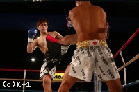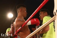 1R、オーソドックスの神保にサウスポーの和島。左ミドルを快調に当てていく和島に対し、神保は伸びのある右ストレート、力のこもった左フックを放つ。和島は左ミドル、左インローを当てながら神保を追い詰める。右ストレートを振るっていくが、和島は距離を的確に取っており当てさせない。しかし和島の左ストレートの直後に神保は右ショートストレートをヒット。和島は一瞬腰砕けになり神保が追うが、ここは和島が追撃させず、さばいて終える。