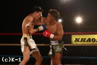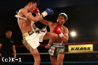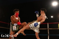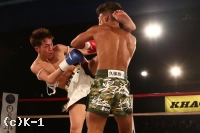 2R、林が右ストレート、左フックと力を込めても黒田は揺るがずボディにヒザを入れる。しかし林もボディにヒザを返し、これで黒田を嫌がらせる。林はパンチに力が入り、やや大振りとなる。ここで林の右フックと黒田の右ヒザが同時に当たり、ダブルダウンとなる。しかしどちらも立って戦闘再開。黒田は左ミドルを連発。林はしかしやはり止まることなく左右のフックに力を込める。