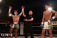 3R、ここもパンチの林vs蹴りの黒田の図式は変わらず。ヒザを放つ黒田だが、林はそこへカウンターで左フック、右ストレートと放って当て、黒田を後退させる。黒田はやや足がフラついてきて、林に左右フック、ショートアッパーと攻め立てられる。黒田は距離を保てず、林のパンチにさらされる。顔面ヒザで反撃する黒田だが、林が攻勢で試合を終える。判定は28-27、28-27、28-27の3-0で林。ダブルダウンも見られた激戦を制した。