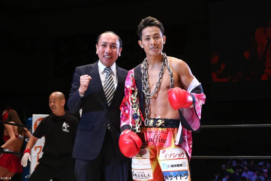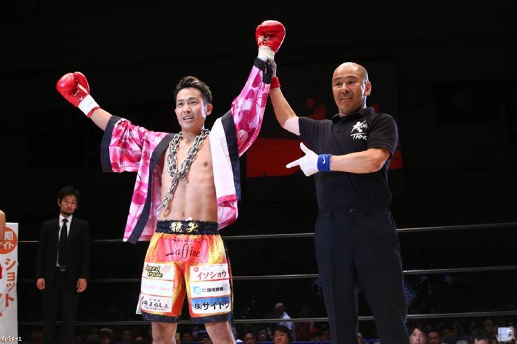 「地元・名古屋は応援がたくさんあるんですけど、その分、プレッシャーもあります。でもこうやって勝つと、みんなワー!と盛り上がってくれるんで、今はホッとしています。(対戦相手の印象は?)インローをカットしないのは分かっていたんで、インローを中心に組み立てて倒せるところで倒そうと思っていました。だから自分の中でのテーマは予定通りでした。(今後の目標は?)試合後のマイクでフェザー級と言っちゃったんですけど、僕の勘違いでスーパー・フェザー級です(苦笑)。スーパー・フェザー級のタイトルマッチお願いします!」
