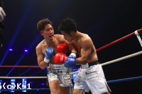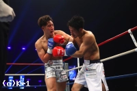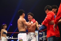(相手の印象は?)警戒してたストレートは速くて、いっぱいもらっちゃったんですけど、僕もこないだのトーナメントで準決勝、決勝とけっこうパンチでやられちゃったんで、ディフェンス、よけることを意識して練習してきたので、けっこう練習の成果は出たかなと思います。(これからの目標は?)ずっと言ってる、盛り上げる試合。みんなが興奮してウォーー!って熱くなるような打ち合いをしていきたいので、もっともっとこう……自分はパンチのあるファイターやと思ってるんで、世界中から打ち合えるようなファイターを呼んでもらって、外国人とリングの上でバッチバチに殴り合って、お客さんを興奮させたいと思います。