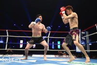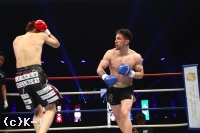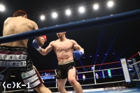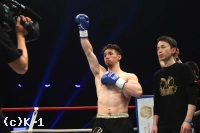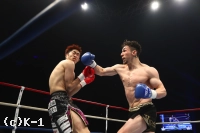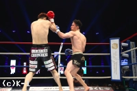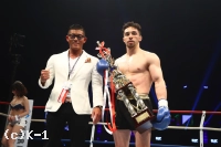 「(試合の感想は?)今回はけっこう順当に作戦勝ちという感じですね。狙ってたパンチが当たって、100点という感じです。(相手の印象は?)和島選手は実際、自分の中ではメチャクチャ強いと意識していて、70kgでも見た試合はほぼ相手を完封していて、ピケオーとも激戦していたので、なかなかタフな、ハードな試合になるなあと思ってたんですけど、自分のパンチが上の階級にも通用してよかったなと思います。(これからの目標は?)K-1のベルトですね、K-1に出てる以上は。どういう形で挑戦になるか分からないですけど、K-1のベルトを狙っていきたいです。(狙うベルトの階級は?)ウェルター級で。チャンピオンは久保君がいるんですけど(笑)、階級を変えるつもりはないんですけど、どうにかこうにかチャンスが巡ってくればいいなあみたいな。トーナメントでもいいなあと思ってますね」