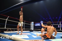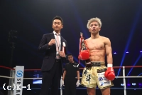 「(試合の感想は?)新しい環境になって3ヵ月なんですけど、全然まだまだ結果も成果も出てないので、これからまだまだ継続して努力していくだけですね。(相手の印象は?)ひと言で言うと、タフすぎる。(これからの目標は?)フェザー級のベルトがホントに欲しいので、これからもっと練習して強くなります。(マイクで何か言いたげでしたが?)『魔裟斗さん、誕生日おめでとうございます』とKO勝ちして言いたかったんですけど、KO勝ちできなかったので、言えなかったです」