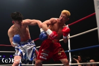 2R、初回に2度のダウンを奪っている友尊だが勝ち気にはやらず、ミドルを当ててそこからのワンツー。しかし川口が左フック・右ストレートととらえて効かせ、流れを引き寄せる。左フックと右ストレートで迫る川口だが、友尊もボディ打ちとフックで応戦。そして川口が突っ込んできたところへ右フックをカウンターで打ち込み、体勢を崩れさせて3度目のダウンを奪う。