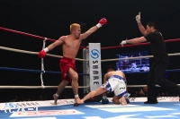 3R、倒し返さんと友尊に向かっていく川口だが、友尊はそこへ引っ掛けるような右フック。これで川口が足から崩れ、4度目のダウンを喫したところで様子を見てレフェリーが試合を止めた。