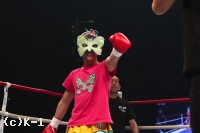 3R、このラウンドもバックブローの森坂に黒田も後ろ回し蹴りでやり返す。回転技のトリッキーな攻撃を続ける森坂に、黒田はガードを上げパンチを弾きながらローキック。森坂もしかし黒田の攻撃が見えてきたか左ボディフックは腕でブロックする。森坂は左ミドルを多用。黒田もボディへのヒザ、左ボディフックと放つが、森坂をとらえられない。判定は29−28、29−28、30−28の3−0で森坂。2Rに奪ったダウンで勝利を掴んだ。
