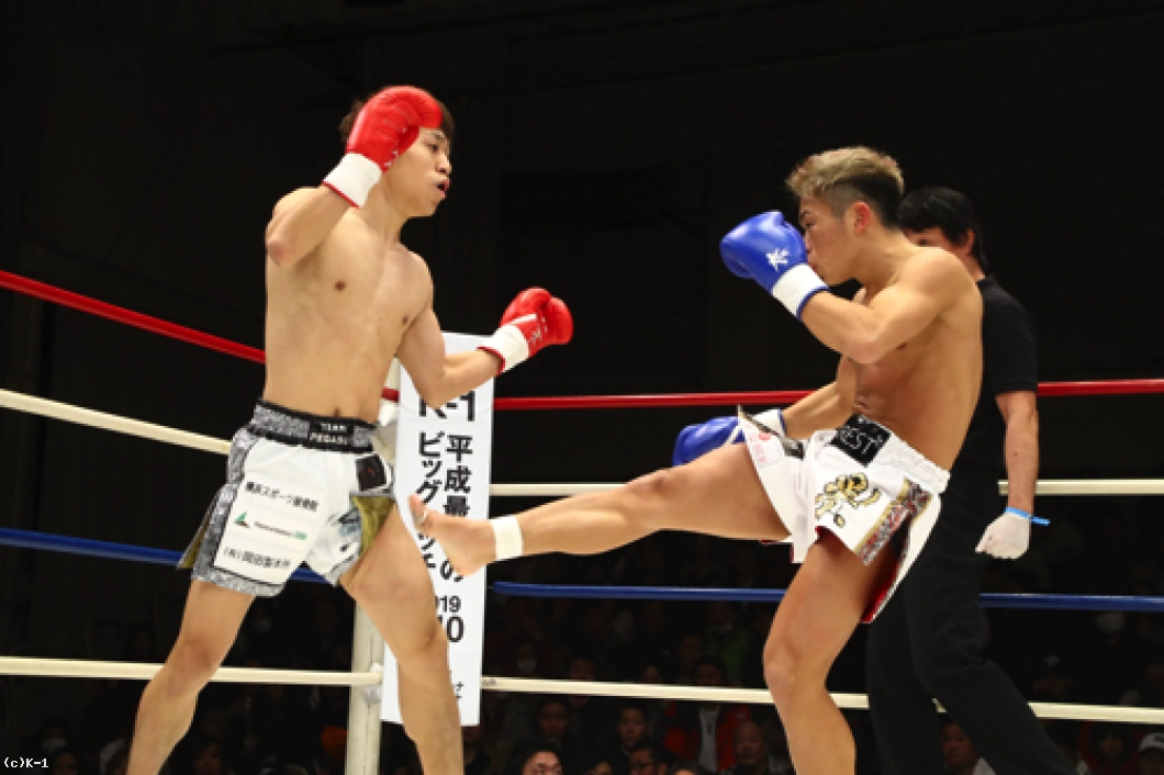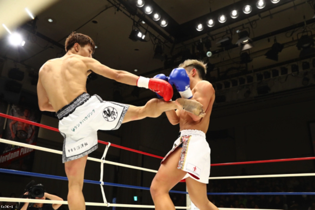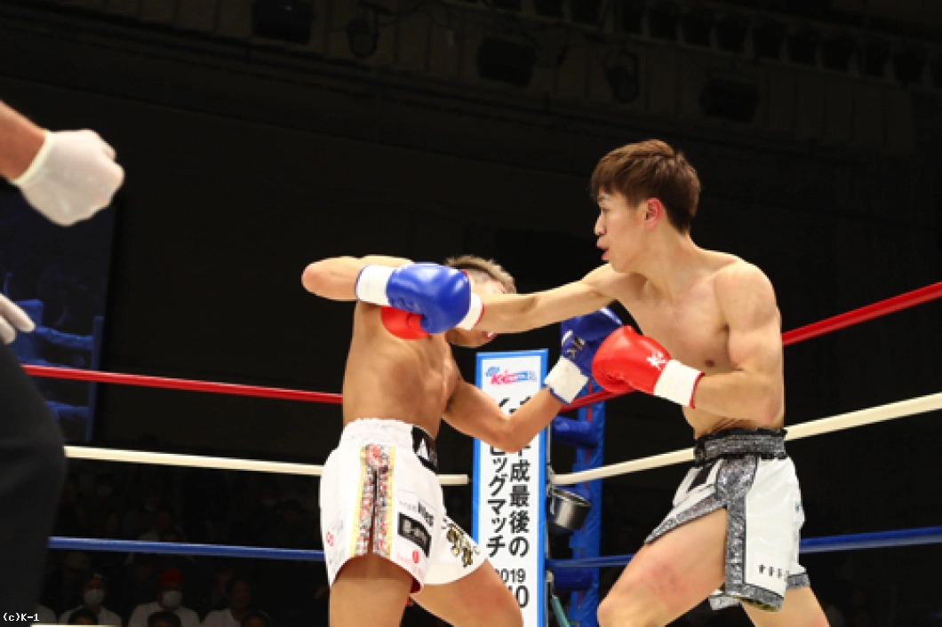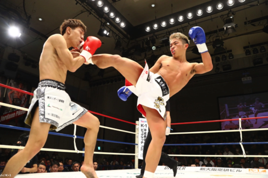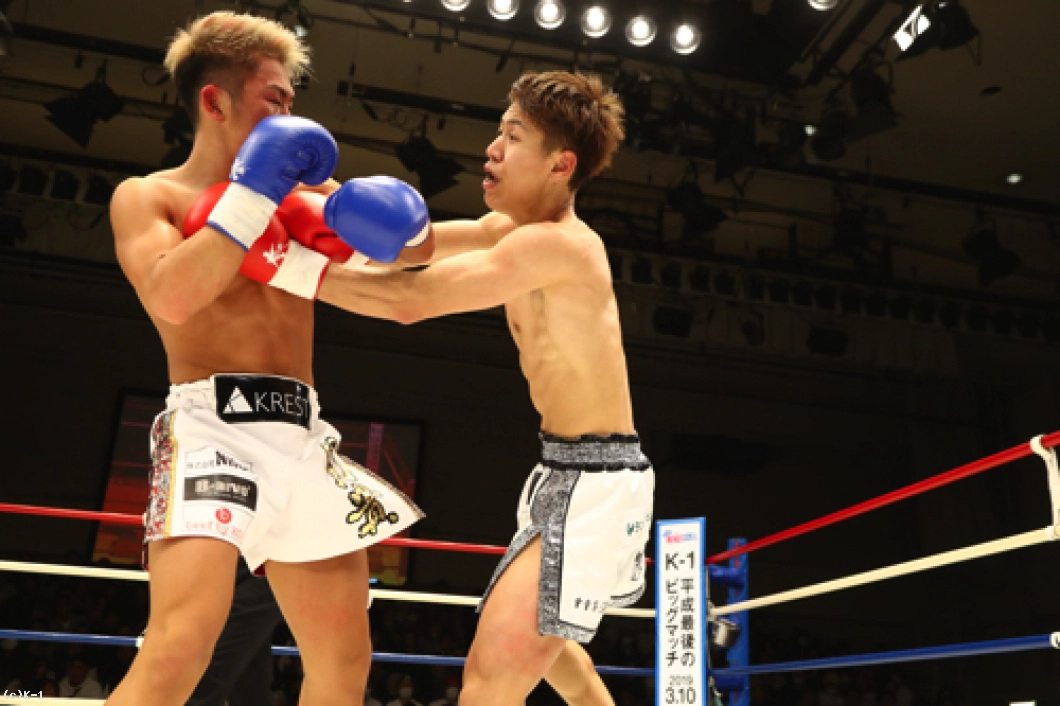 延長R、晃貴は接近戦で馬力を発揮して萩原を押す。これに倒し萩原は距離が開くとハイキックを飛ばす。蹴りのあとで足がフラつく萩原だが、前に出て右ストレートを当てる。圧力のある晃貴を受け止め、押して下がらせる萩原。だが晃貴は接近際に右ストレートを当てる。右ハイ、バックブローを放つ萩原だが当たらない。攻撃に蹴りを織り交ぜる萩原に対し、晃貴はやはりパンチ主体で戦い終了のゴングとなる。判定は3者10-9で晃貴。武尊の後を追い、Krush王者の夢を成し遂げた。
