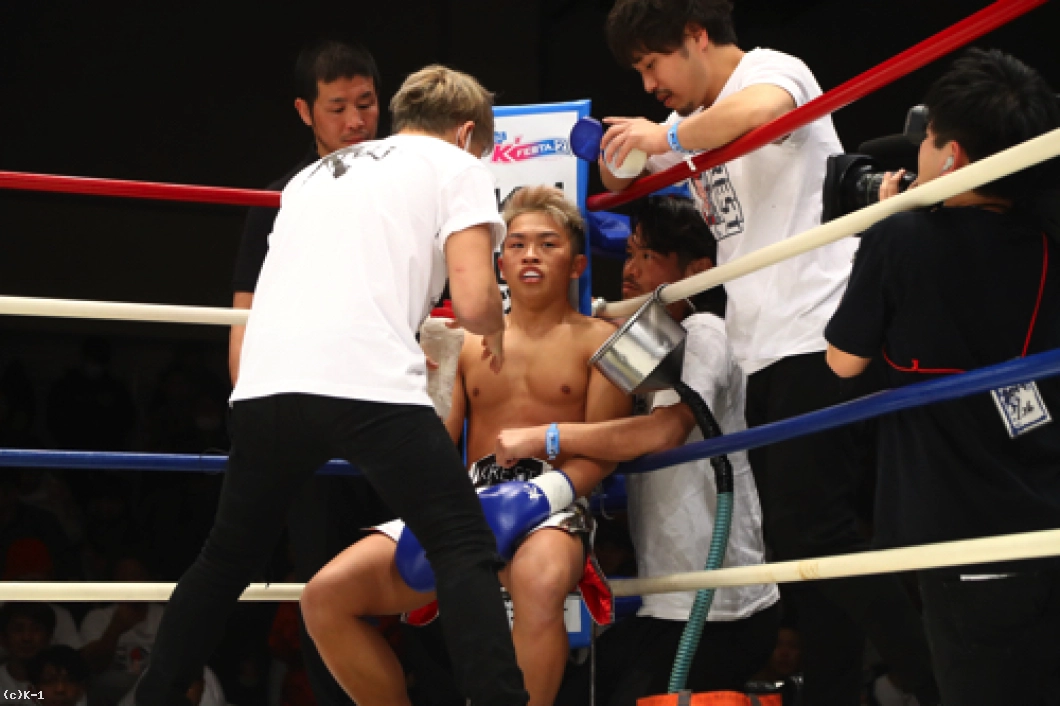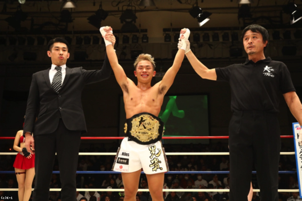 「(試合を振り返って?)チャンピオンになれて夢みたいな感じですね。(対戦前と相手の印象に変化は?)気持ちが強くて、殴り合っていて楽しかったです。最後は気持ちでした。(自分のペースになかなか引き込めなかったと思うが?)相手は思ったとおり、うまくてやりづらかったですけど、最後は気持ちでいけたかなという感じです。(武尊選手からは試合後に何か?)本当に良かったねって言われました。『チャンピオンになれると思わなかった』って言われました(笑)。(今後の目標は?)K-1に出たことがないので、武尊くんと同じ舞台で一緒に試合がしたいですね。-55kgでも試合できると思っているので。Krushのチャンピオンになれたということで、K-1でもチャンピオンになれたらいいなと思います」