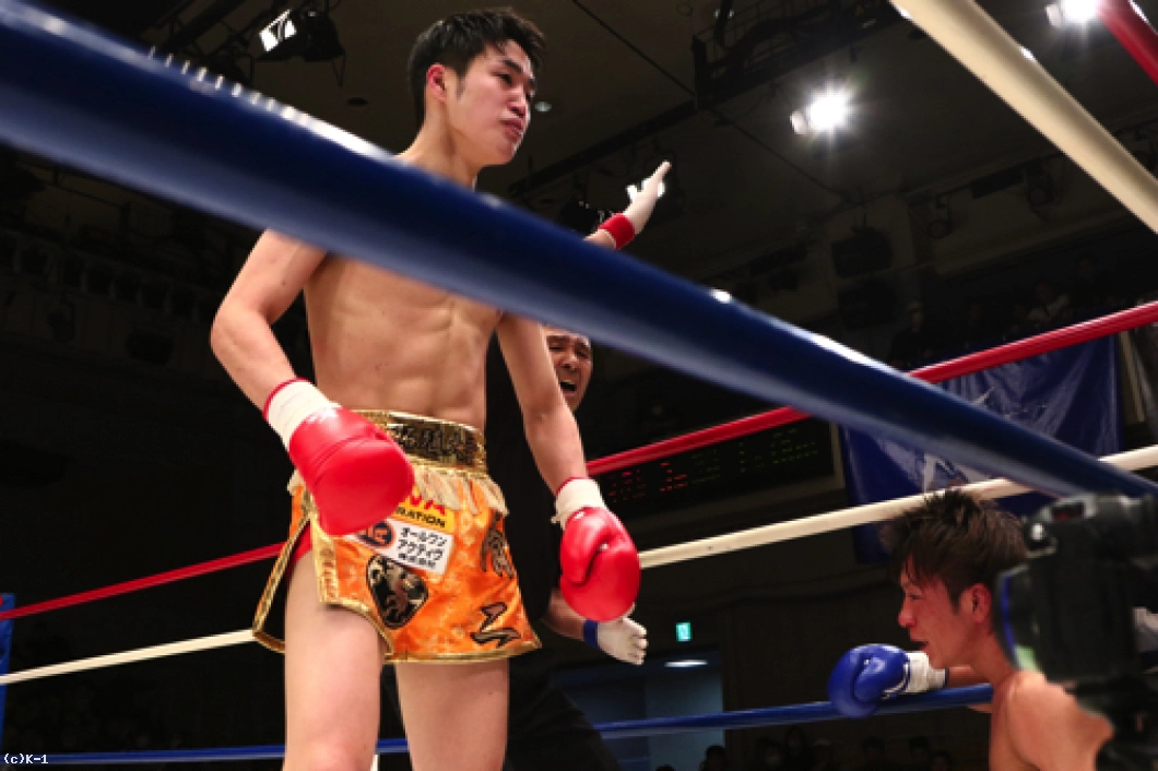 「(試合を振り返って?)蓮實選手はイメージ的に、ライト級でトップのパワーがあると思うので警戒してました。そのパワーに耐えれるなら俺の勝ちとわかっていて。はじめにガードの上からパンチをもらったんですけど、いけるぞと思いました。距離感もテクニックも俺のほうが上だし、カウンターさえもらわなかったら勝てると1R目から思ってました。(対戦前と相手の印象に変化は?)ムチャクチャ相手を研究したので、そんなに変わってないですけど。ちょっと組み付きと足払いが多かったのはイヤでしたね。(今後の目標は?)試合前に今年のKrushで一番目立つと言っていたので、いいスタートは切れたと思います。応援してくれている人のためにもがんばっていきたいなと思います」