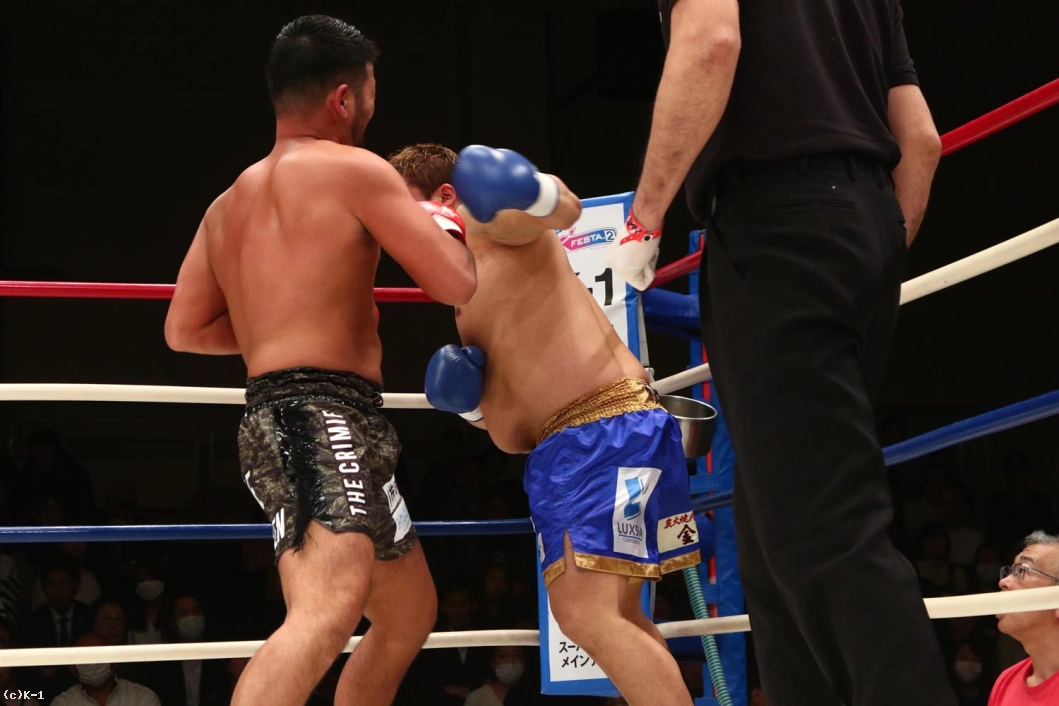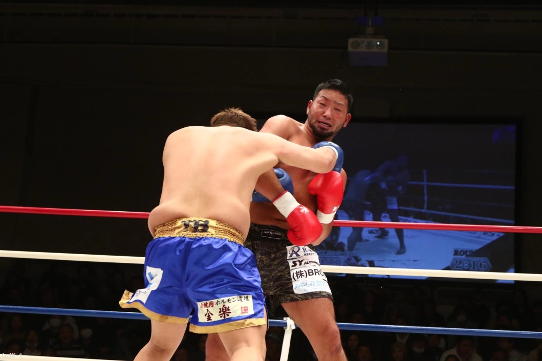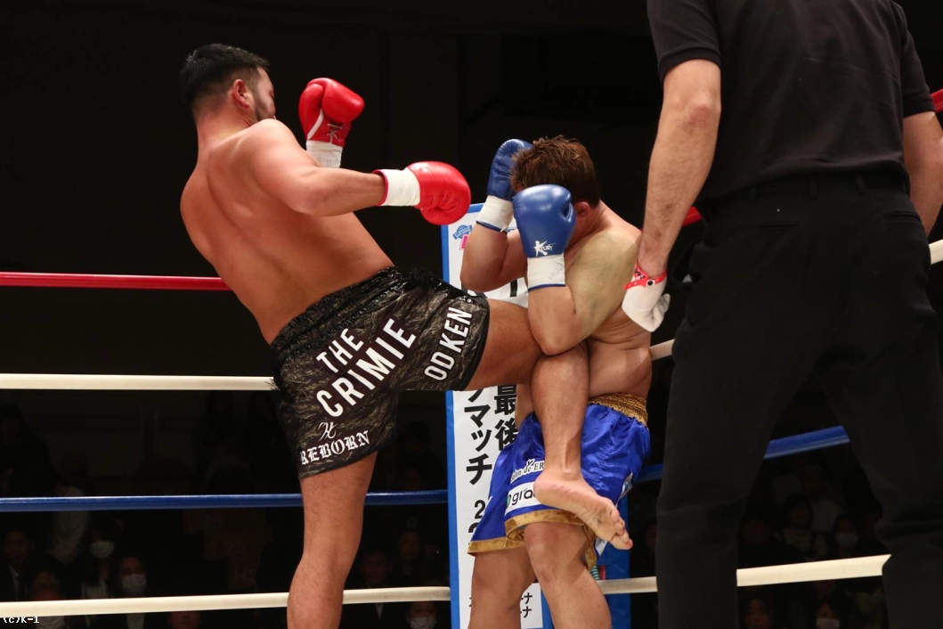 2R、OD・KENはミドルから打ち合いに臨むが、植村はガードからピッチングのようなフルスイングの左右フックでOD・KENを脅かす。OD・KENはボディにヒザを打ち込み、植村をストップするが、植村はこれをしのぐとOD・KENをコーナーに押し込み、右から左、左から右とフックで猛攻し、OD・KENを打ち倒す。立ち上がったOD・KENだが、ダメージを見てレフェリーが試合をストップ。手数は圧倒的不利だった植村が重量級らしい攻撃力でKO勝利を収めた。