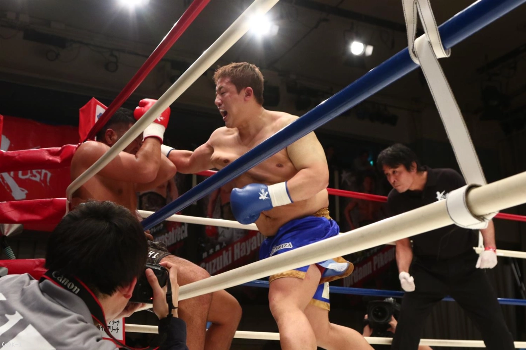 「(試合を振り返って?)とにかくKOで勝てたのがうれしいですね。応援してくれたみんなの前で勝ててうれしいです。(対戦相手の印象は?)強かったですね。野性的でパンチの出るタイミングがわからなくて。(今後の目標は?)ここまで来たら、ベルトを獲ってやろうと思ってます」