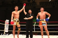 3R、両者ジャブを突きながら次なる攻め手を探る。勝輝が右ストレートを振るって出ても山田は押し返す。勝輝は左フック、右ストレートで打って出ていくが、山田は見切ってバックステップでかわし、右フックと左ストレートでカウンターを取る。判定は30−28、30−28、30−28で山田。1年4ヵ月ぶりのリングだったが勝利を飾った。