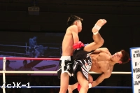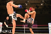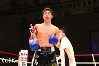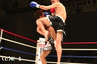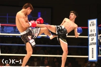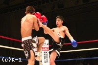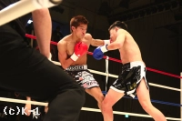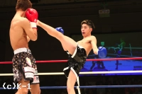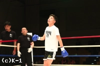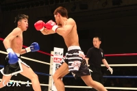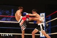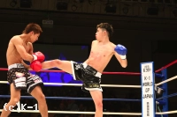2R、多久田はこのラウンドも軽快なステップで自分の距離を保ち、左ストレート、左ミドルと良輝に当てる。前に出ていく良輝だが、多久田はヒラリと体を横にかわす。そしてボディフックを打ち込み手応えを得ると、多久田はミドル・ヒザと追撃してダウンを奪取する。鼻血を見せながら立ち上がった良輝は再び前に出るが、多久田はそこへ左ハイキック。良輝が後方に倒れ、レフェリーがここで試合をストップした。