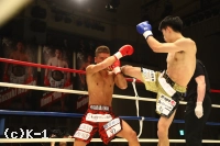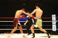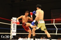 1R、ジャブから接近しようとする島野に対し、西京は右ローを蹴る。さらに鋭い左フック、右ストレートで島野の勢いを止めんとする。だが、島野は被弾があっても圧力を弱めない。西京はジャブにかぶせる右クロス、右ロー、右ストレートとヒット数で上回り試合をリードする。西京はジャブ・右ストレートを当て、島野は鼻血を出す。