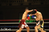 「(試合を振り返って?)戦前から実力がある選手だと思ってたんですけど、やってみて西京選手は凄いテクニックがある相手で、今回完敗だなっていう感じです。(対戦相手の印象は?)テクニックが高いレベルの選手だなと感じました。動くべき動きを瞬時に行なう反射の早さとか、そういったものを試合をしていて感じました。(今後の目標は?)負けたことに対しては言葉にならない思いです。最後のKrushを勝って締めて、自分の近くにいる人たちに気持ちを伝えたかったんで。悔しい結果ですけど、これを受け止めたうえで自分の気持ちを伝えて。今回の負けというものをしっかり受け止めたいと思います。(1R目の動きは固かったように見えたが?)西京選手はスピードがあってカウンターが上手な選手なので、少し警戒しすぎて固くなってしまったかなと思います」