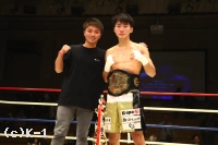 「こんばんは。今日は応援ありがとうございました。K-1甲子園優勝してから高校生のうちにチャンピオンになりたいと言って、まだこれからなんですけど、チャンピオンになれて嬉しいです。島野選手ありがとうございました。これからもっと精一杯頑張るんで、応援よろしくお願いします」