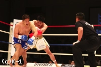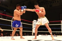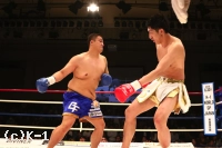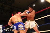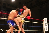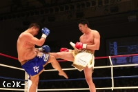2R、植村は開始から一気に距離を詰め、左右のフックを猛連打。しかしRUIはこれを何とかしのぎ、今度は逆に顔へのヒザ蹴り、前蹴り・ミドルと植村を攻める。植村はハイキック、バックブローと攻撃を繰り出すが、リーチ差のためヒットできない。RUIは植村をプッシングでコーナーに押し込みヒザ蹴りを浴びせる。