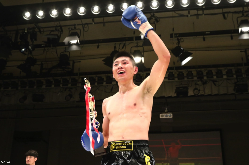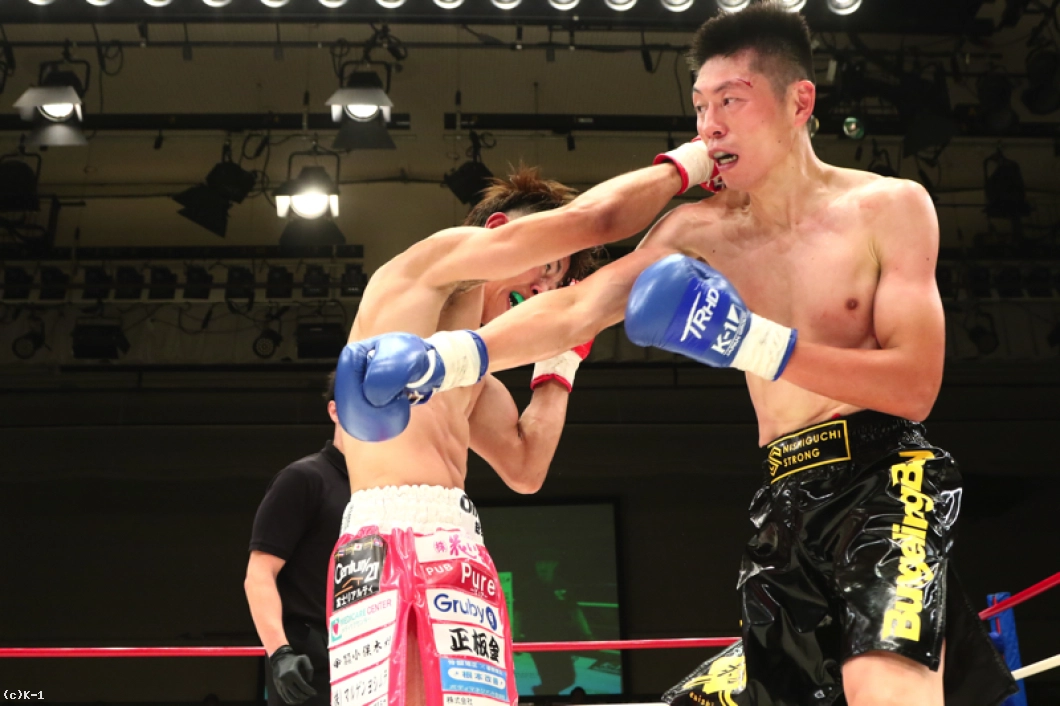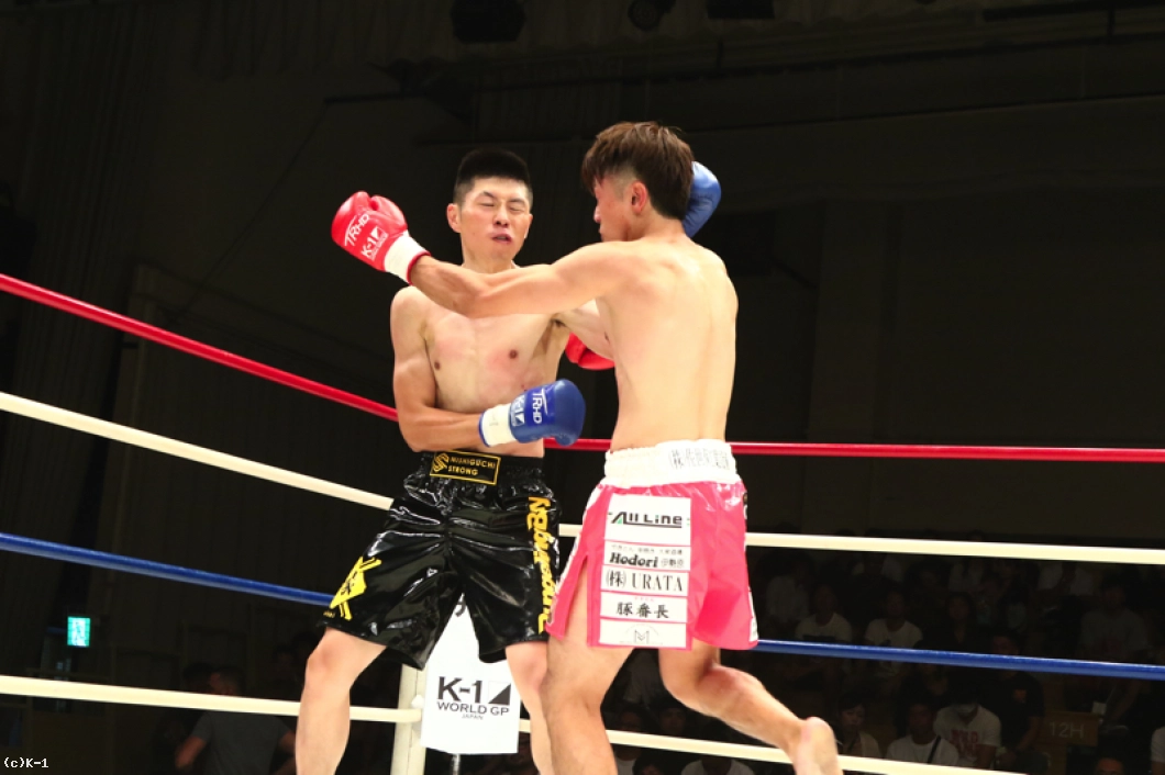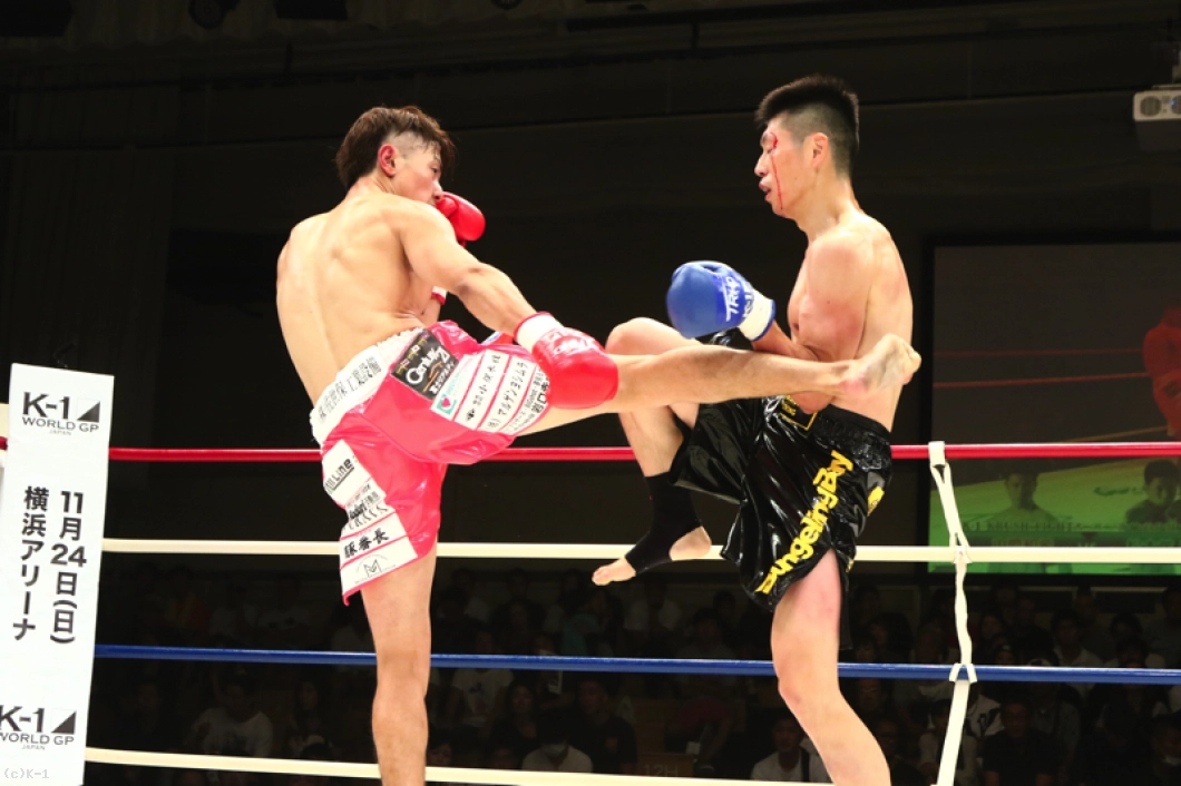 (対戦相手の印象は?)やっぱ思った通り、蹴りとか攻撃は凄い痛かったです。でも何かちょっと思っていたよりは手数が少なかったと思います。やっぱり僕みたいな相手とやって気負った部分があったんじゃないかなと。そこはちょっと勝機やったかなとは思います。(今後の目標は?)スーパー・ライト級は8月大会で防衛戦もありましたけど、すごく盛り上がっていると思います。順番待ち的にはそろそろ僕の名前が挙がっても良いんじゃないかなというのが1つと、僕は地元が大阪で家がさいたま新都心の側なので、K-1のさいたまスーパーアリーナ大会と大阪大会は縁があれば良いなというのが目標です」