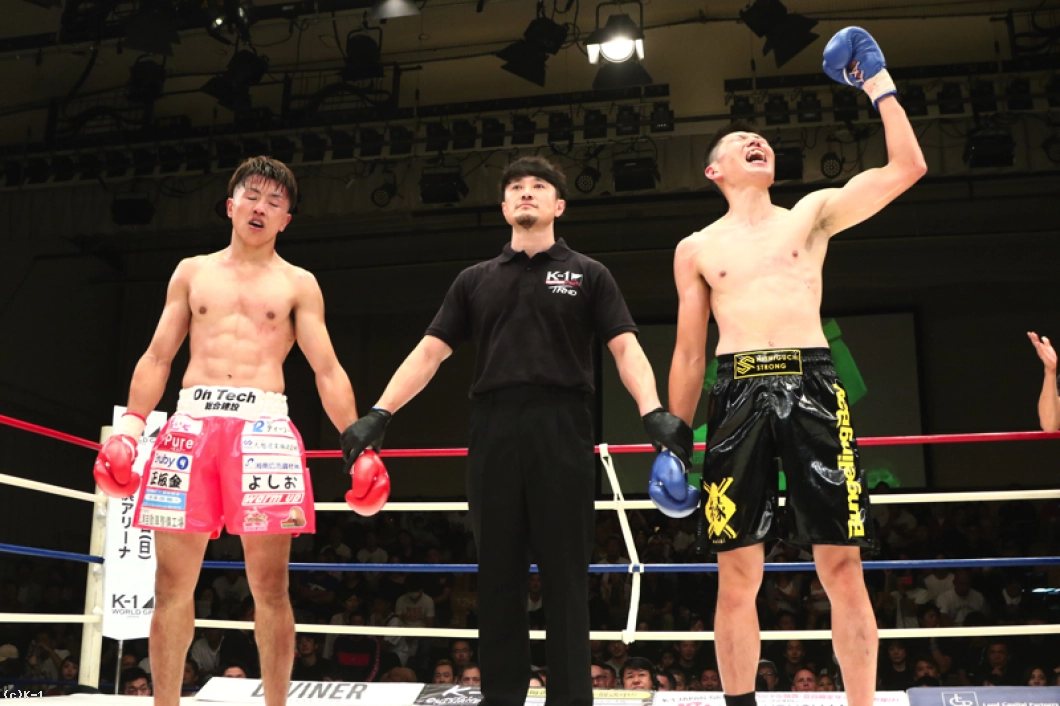 延長R、ミドルで遠ざけんとする山際だが、松本はこれを許さず接近してのヒザ。松本はジャブ・ストレートからボディへのヒザ。常に前進しており、山際は蹴りの動きが作れない。押し返す山際だが、松本の圧力を持て余し疲れが見られる。松本は前に出る動きを変えずヒザ蹴り。しかし山際も左右フックを当て、松本は足をフラつかせる。松本も右ストレートで山際を逆にフラつかせる。判定は10-9(山際)、10-9(松本)、10-9(松本)の2-1で松本。実力者にして難敵の山際を振り切って勝利した。